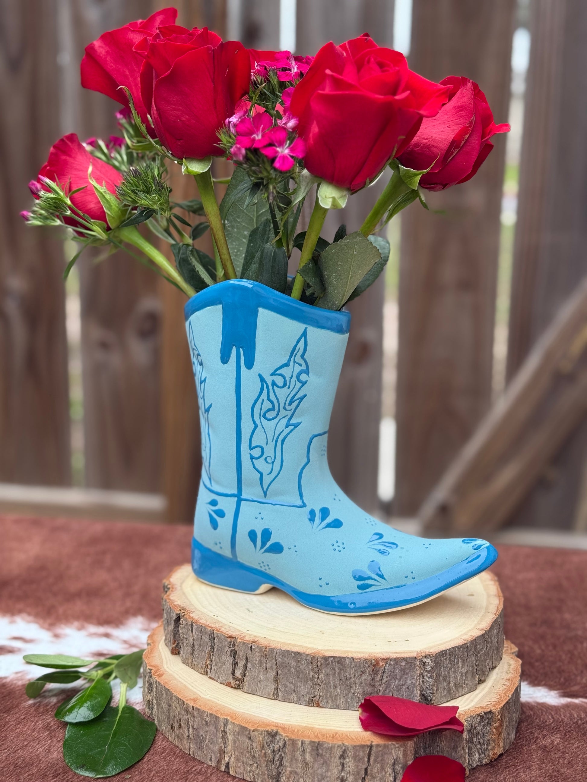 Whether filled with fresh blooms or displayed on its own, it celebrates our roots with flowers that merge De Rancho spirit and Mexican hacienda elegance.