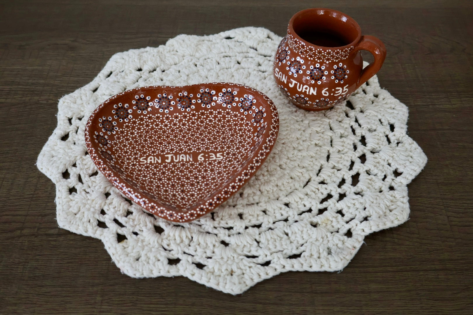 Each piece is handmade by skilled artisans from Michoacán, Mexico, making every set truly one of a kind—slight variations in shape, color, or texture are natural and part of its uniqueness.